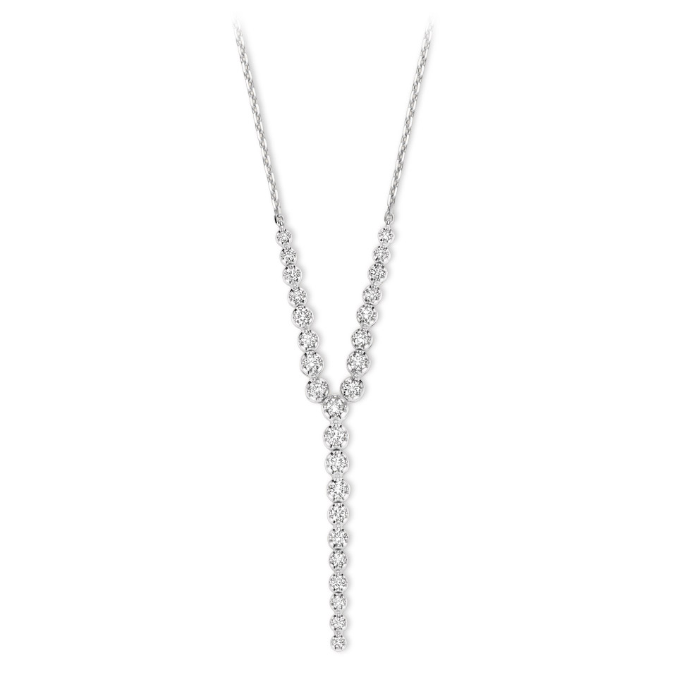 Des perles de diamants taille brillant illumine cet élégant et pur collier cravate en or blanc,
