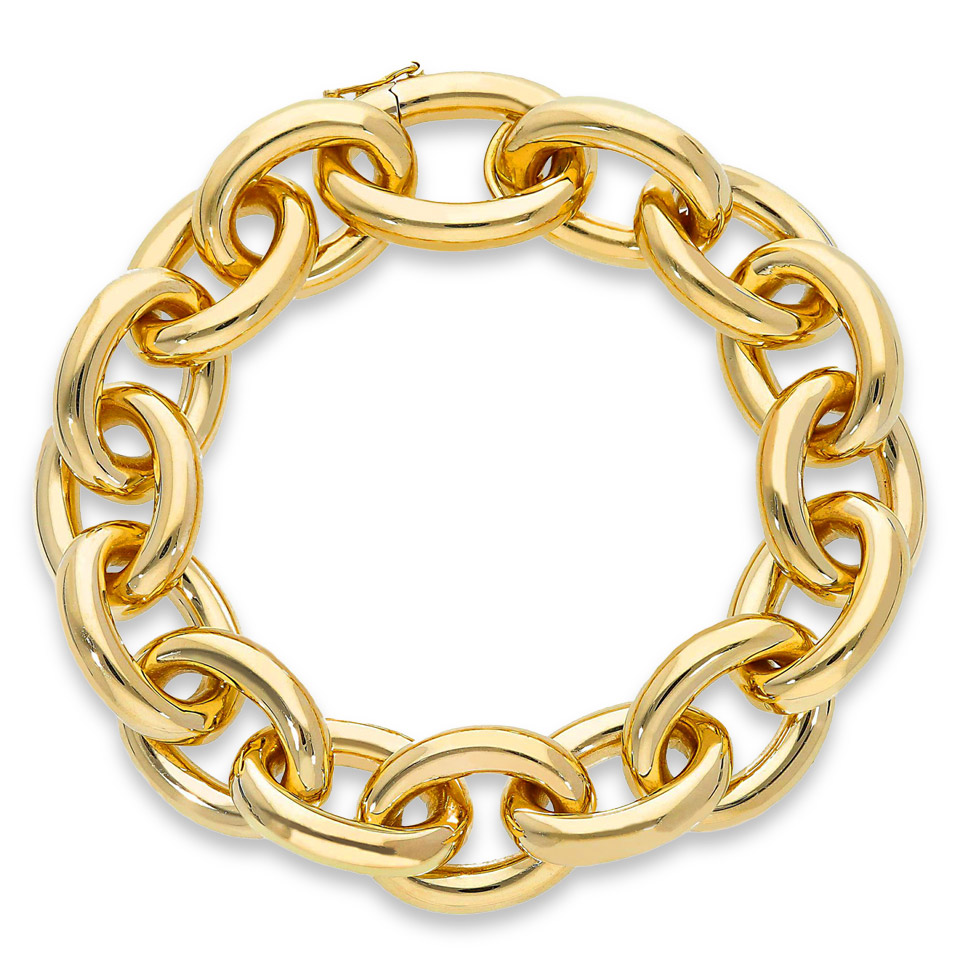 Généreux maillons ovales en or jaune pour un collier-chaîne à l’allure affirmée,