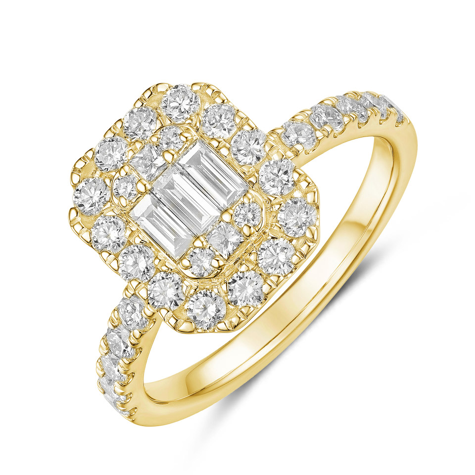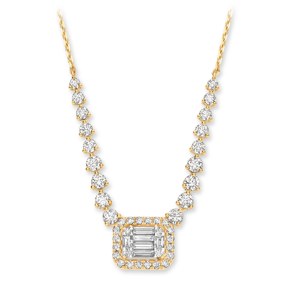 Un éclat de diamants taille baguette et brillant (1,44 ct) souligne ce collier en or jaune, raffiné et contemporain,